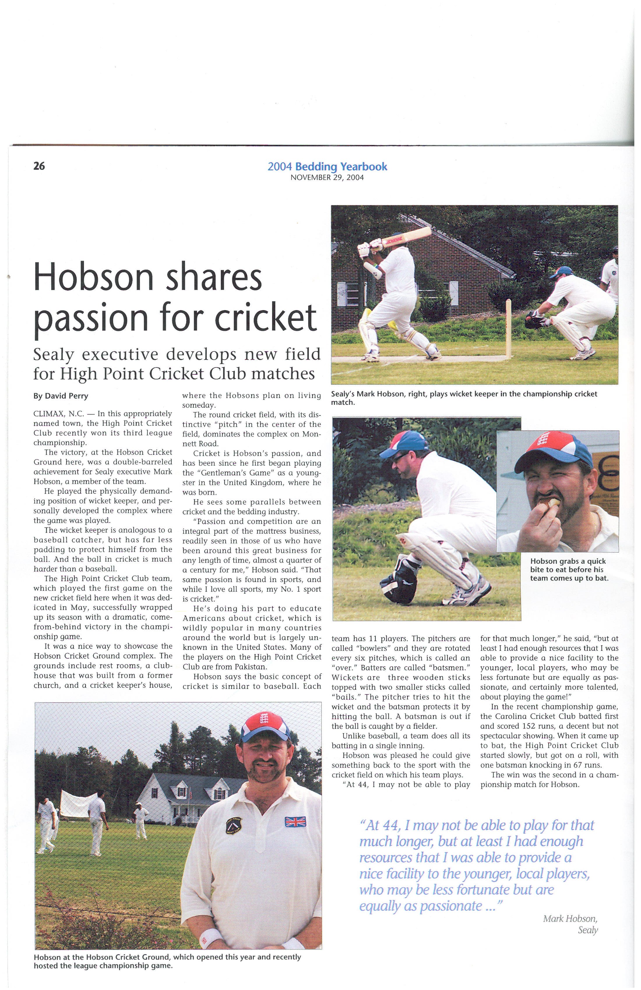 WELCOME TO HIGH POINT CRICKET CLUB